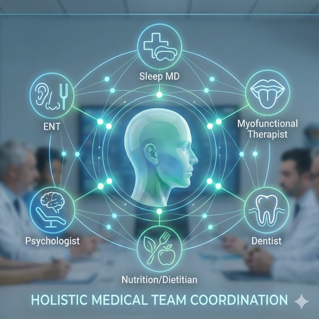 Our commitment is ethical and comprehensive. We coordinate with your ENT, sleep physician, myofunctional therapist, and Nutrition/Wellness specialists. This ensures that OAT is appropriate for you (i.e., not Central Sleep Apnea or Insomnia) and that every aspect of your health is supported for a truly restorative result.