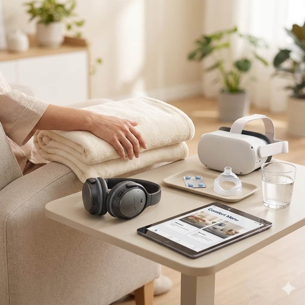We offer a full spectrum of relief. This includes crucial non-sedative amenities like noise-canceling headphones, warm blankets, and virtual reality. For deeper relief, we offer Oral Conscious Sedation or Nitrous Oxide (Laughing Gas). We tailor the exact option to your anxiety level.